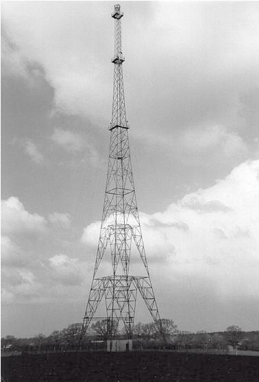 | More typical was the single triangular lattice mast, 300 ft tall, resting