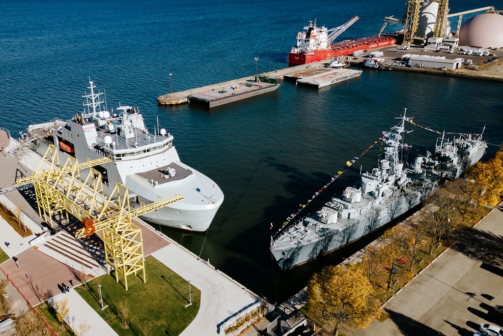 * First Launch: When a ship is moved from shore to water for the first time. The future HMCS Harry DeWolf was successfully lowered into the water under controlled circumstances.