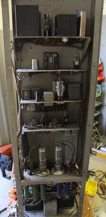 AT3 relay section mounted above the rectifiers. The stepping relay in the top corner is used for remote control over a phone line. | AT3 audio and modulator stages |