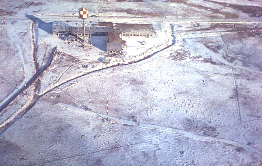 The original Direction Finding building was located to the southwest of the main building approximately one mile distant. This was of wooden construction covered with a type of tar paper. With the advent of new D/F equipment, this building was removed and a new one constructed in 1962. This building is octagonal in shape approximately 8 feet by 8 feet and situated on a concrete pad. It is unmanned and is heated electrically.