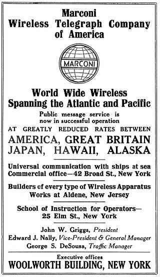 2) Wikipedia ad https://en.wikipedia.org/wiki/Marconi_Wireless_Telegraph_Company_of_America#/media/File:1917_American_Marconi_advertisement.jpg