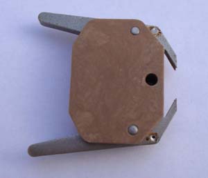 | Crab claw tool. Test wires could be soldered to the eyelets on the claws. (Photo by Jerry Myers) |