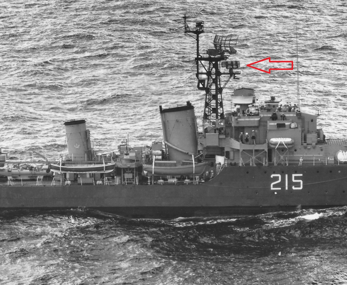 | Situated on the topmost teardrop on the foremast is the 293 radar