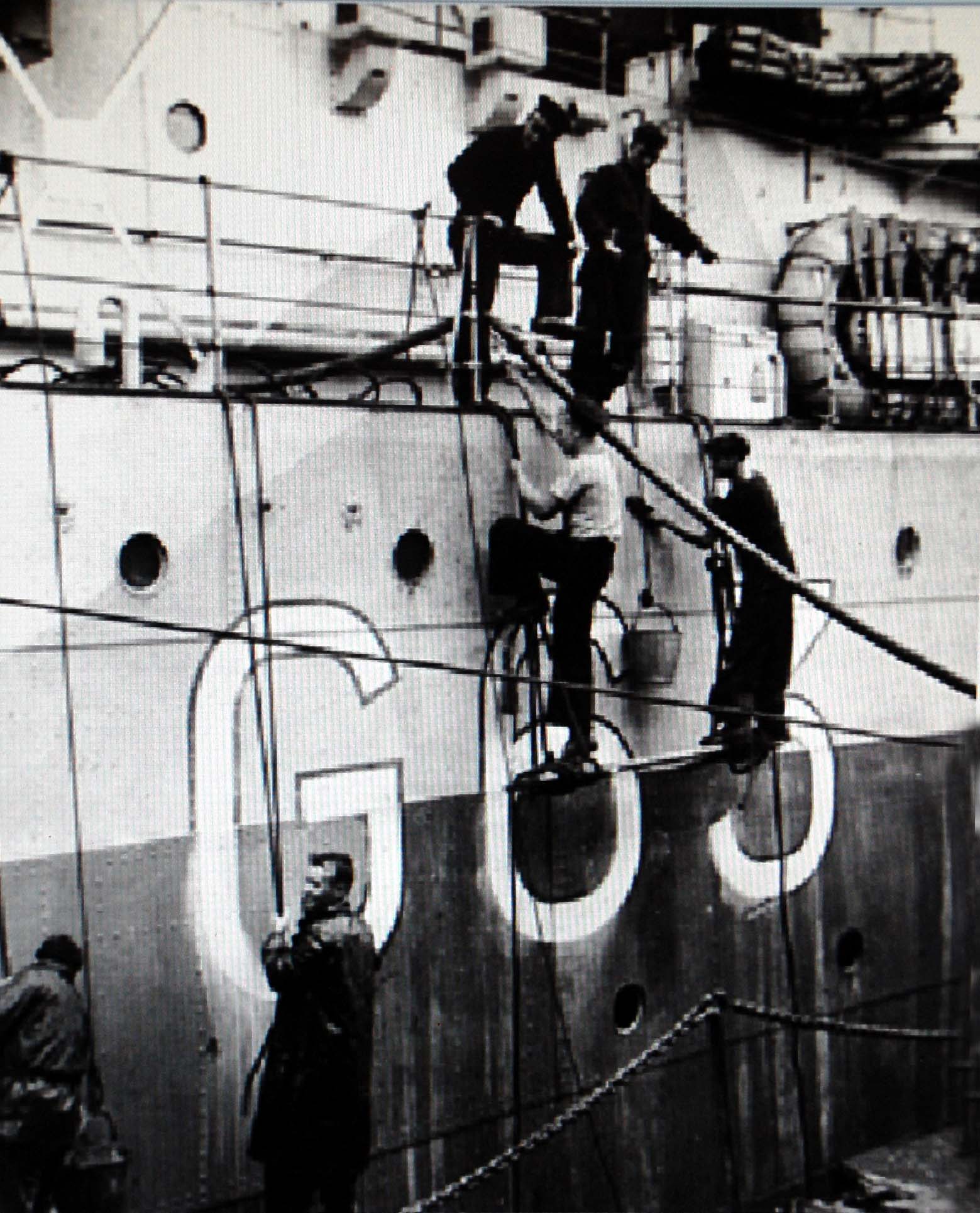 A whaler was manned by a crew of five oarsmen and a coxswain. The coxswain was the person in charge and he also operated the tiller. There were always men in the WATCH ON DECK designated as boat's crew. The boat could be manned and lowered by hand in minutes. Two Robinson Disengaging Gear devices allowed both falls to be released simultaneously. Afterwards, the boat could then be re-connected and hoisted aboard manually by the ship's company, or by using the torpedo winch and davit on the port side. The whaler could also be sailed and it was used in harbour for recreation or rowing competitions. .Whalers and motor cutters did not belong to a particular ship.When HAIDA was built, there was one motor cutter on the port side . On the Starboard side, in the forward position, was the whaler and aft of that was the motor cutter. During the 1944 refit, the boat positions on the starboard side were reversed, putting the cutter forward and he whaler aft. Moving the whaler aft makes it much easier to access by the crew and gives more room in the waist for men to man the Falls. A second advantage of moving the motor cutter forward is having equal weight distribution on each side of the ship. Lastly, it allows the falls of the starboard cutter to be lead to the port side and the torpedo winch. The seaboats were hoisted by the winch.