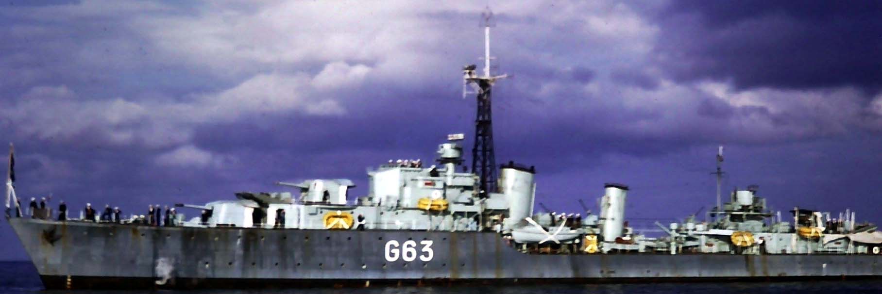 During the mid 1950’s, the RCN started to transition to CO2 inflatable life rafts during normal ship refit periods. Since ships go through refits at different times, you will see the old Carley life rafts as well as the inflatable ones being used into the early 1960’s. You may also notice that the new shipside grey came into usage about the same time frame. Photos of these inflatables show a fabric bundle, strapped to a slatted frame at the ships railings. Photos also show several colours, - black, dark grey, beige, and orange. Sometimes they were singles or double stacked. On HMCS Bonadventure, they were stacked 3 high. Sometimes they were covered with a white tarp. I’ve always thought that they were a fabric bag with the raft inside, but there might be a fiberglass case inside or the ‘fabric’ might be the rubberized bottom of the raft. If anyone knows for sure, I’d like to hear from them. During yard periods, the rafts were removed for inspection and inspected ones in inventory were put back on the ships. This is why you sometimes see different coloured rafts over the years, although, the reason different colours existed I can only guess at. Possibly it was the procurement from different manufacturers, or the lack of a colour requirement in the specs"