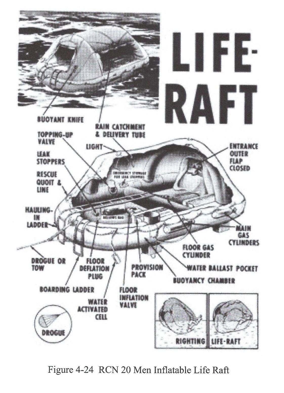 20 MAN INFLATABLE LIFE RAFT (1957 to 1963) In the late 1950s and early 1960s, 20 ,man inflatable rafts in fiberglass containers started appearing on RCN ships.