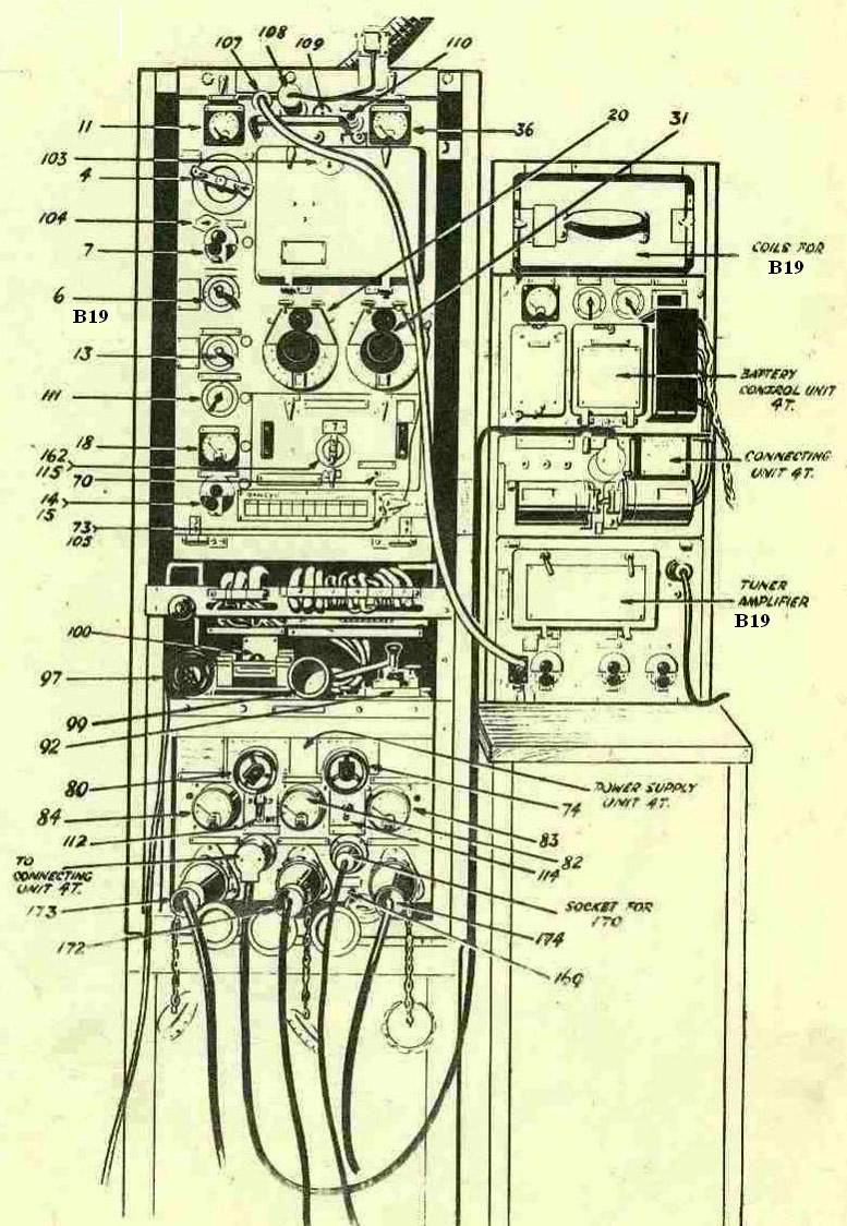| B-19 tuner/amp with the coil storage box to its left. That's not the original colour. Some previous owner repainted it with a non-standard colour. |