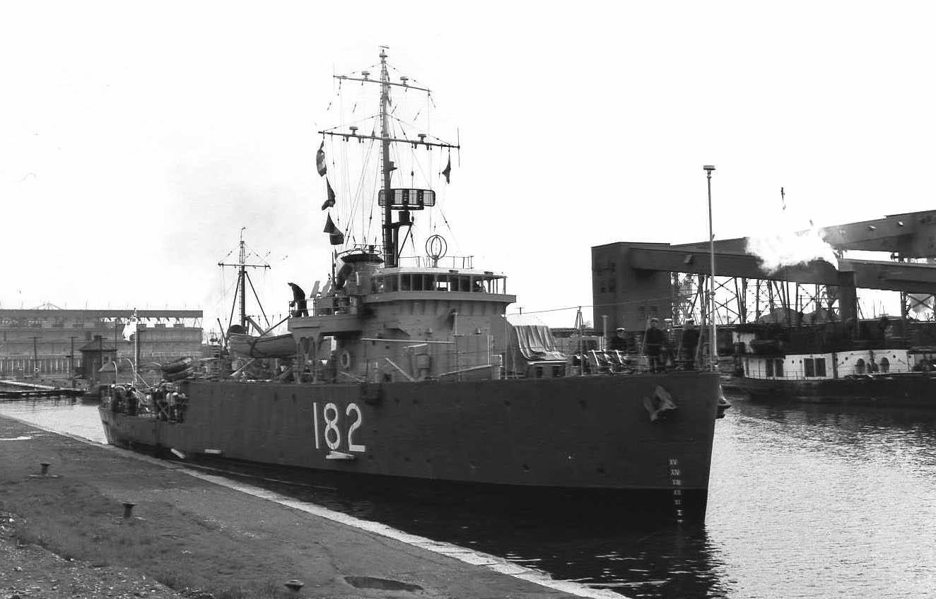 "The RCN had four minesweepers in 1939, Canadian-built copies of the RN's Basset class, and consideration was being given to building more of these when the Naval Staff learned of the RN's newer Bangor class. The Bangor was larger and faster, had much greater endurance, and burned oil unlike the coal-burning Bassets. Accordingly, twenty-eight Bangor class minesweepers were ordered in 1940 and twenty more under subsequent programs. Another six, built at Vancouver for the RN, were loaned to the RCN for the duration of the war. Ten Bangors of the first program were of a smaller, diesel-engine variety and one of these, Granby, survived until 1966. Most of the Bangors were named after Canadian towns and cities; the rest after bays.Like the corvettes, the Bangors were small enough to be produced at shipyards on the Great Lakes, and sixteen were built at Toronto and Port Arthur. The Toronto yard turned out six others of the class for the RN. As enemy mines were laid only once (1943) in Canadian waters, the Bangors were used principally as escorts to coastal shipping or as local escorts to ocean convoys. Sixteen of them, however, assisted in sweeping the approaches to Normandy before D Day, and stayed to help clear German and Allied minefields in the Channel for some months afterward.