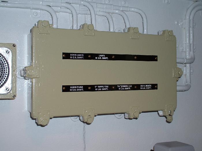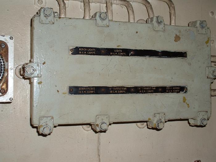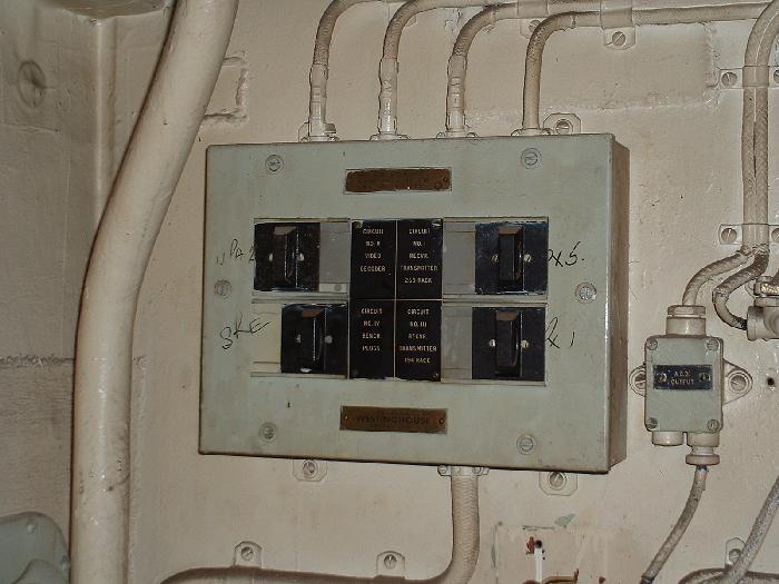 The 220 VDC distribution panel. The tally plate markings had to be