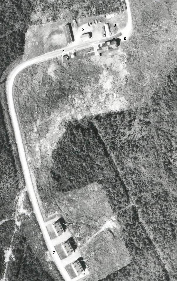 Gord Walker recalls "that line running behind the PMQs parallel to the road were CN-CP landlines that came into the base from the direction of the PMQs. They were attached to trees as well as a few poles, sometimes not more than 6 or 7 feet above the ground. Taylor (Punchy) Gordon, the Chief at the time, had me out on a couple of occasions in the dark of night trying to locate wire breaks where wildlife had become entangled with the wires. It was heavily wooded and it was not unusual for black bears to be in the area of the base and PMQs. It was not a comfortable place to be at night and the black flies didn't help either".