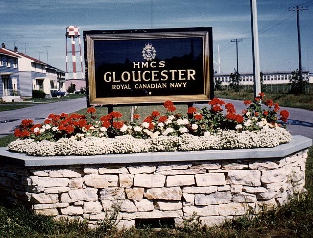 Cdr D.S.K. Blackmore was responsible for having this beautiful entrance to Gloucester built in 1959. The main gate is further from the back of the sign. Compare it to the 2006 image below. (Photo from the collection of D.S.K. Blackmore. Submitted by his daughter Donna Loewen <donnaern(at)telus.net>) Above and below: The entrance as seen on May 22, 2006. Near the right center of the above photo is the stone cairn dedicated in 2005 to the men and women who trained and served at Gloucester. (Photos by David Smith)