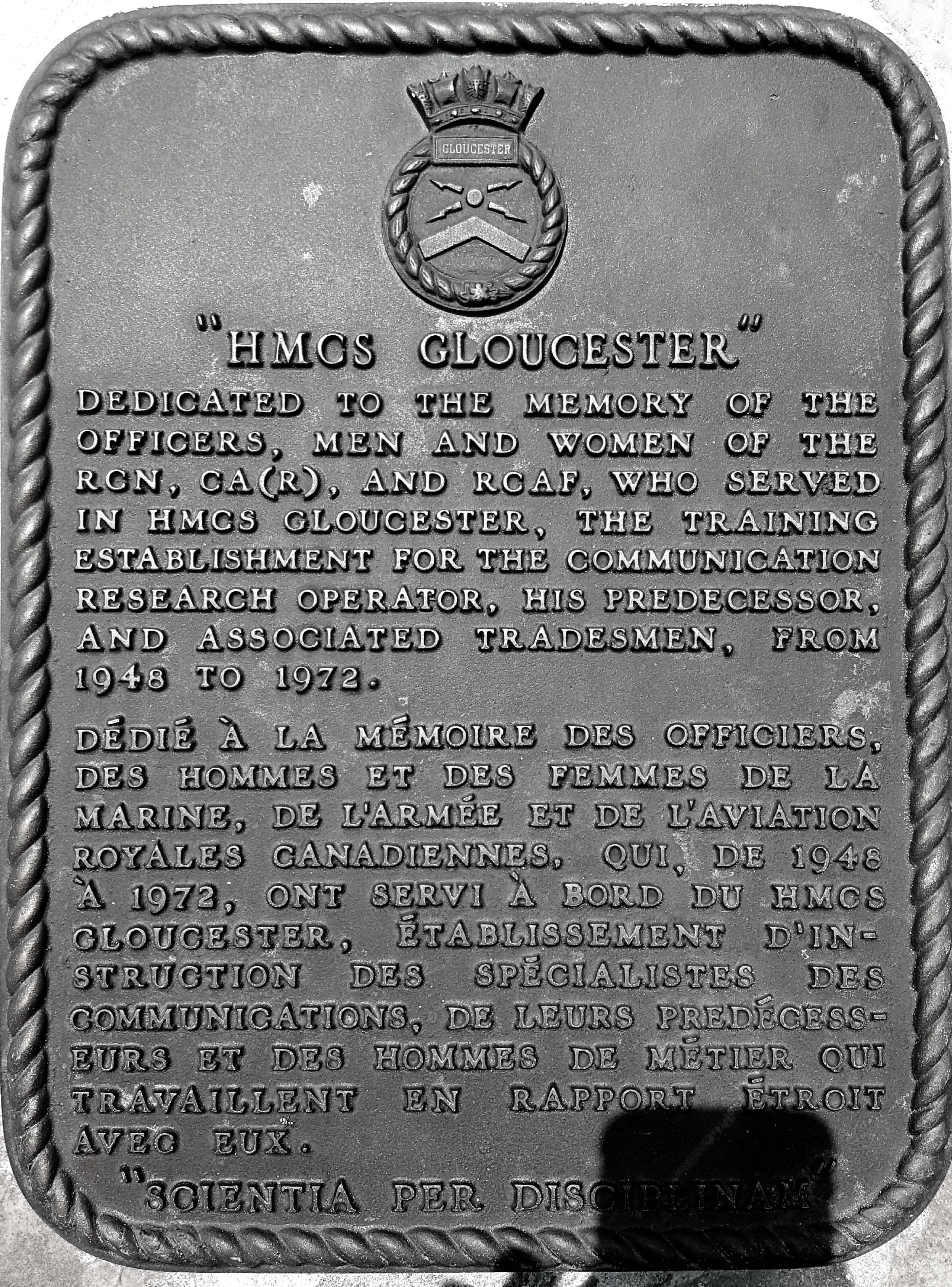 When Glouscester closed in 1972, this memorial plaque was dedicated to those who served there. Click on image to enlarge. (Photo credit unknown) |