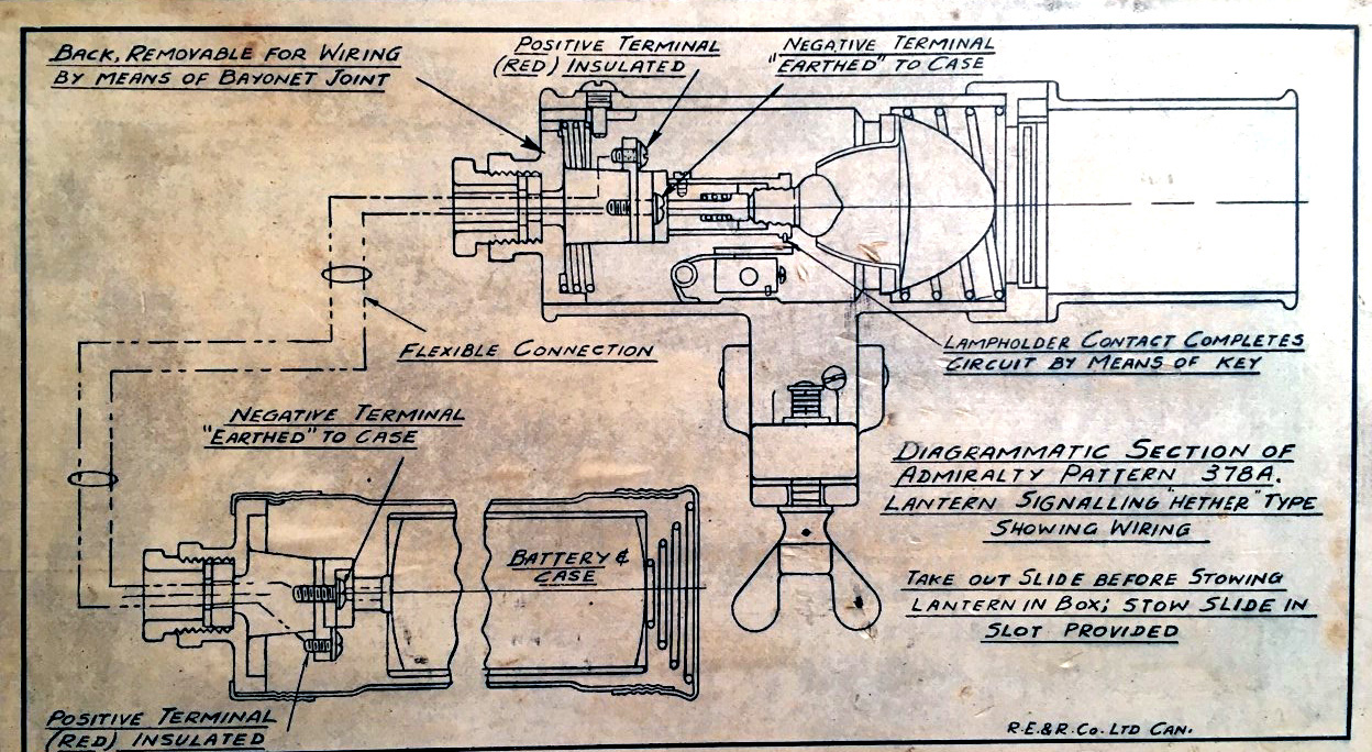 ALDIS SIGNALLING LANTERNThe RN first started using Aldis lanterns in the 1800's and the rest of the navies adapted this form of flashing light using Morse code. Royal Navy, RCN and USN versions of the Aldis were slightly different whereby the USN models used a shutter to key the light beam while those in the RCN and RN used a tilting mirror.
