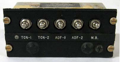 | AN/AIC-10 | Aircraft intercommunications. The AIC-10 was introduced in 1953 by the USAF as a new standard for Aircraft Interphone Communications. Manufactured by Andrea Radio Corp or Radio Corporation of America. Pictured here is a 5 position C-826/AIC-10 control panel but the Argus used a 10 position panel sd evident from photos. It was mounted at all stations in the aircraft. As a secondary function, it could be used to listen to the ADF. There was an overhead monitor speaker at the galley table. (Photo courtesy E-bay) |