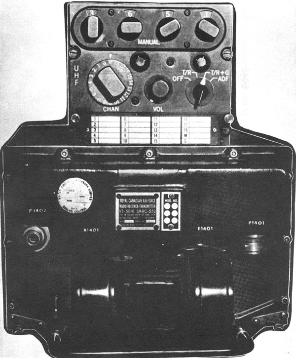 | ARC-552 | UHF- Command Communications. Receiver/Transmitter; 225 to 400 MHz with independent Guard receiver for 243 MHz. Power output: 20 watts average. (Photo courtesy RCN) |