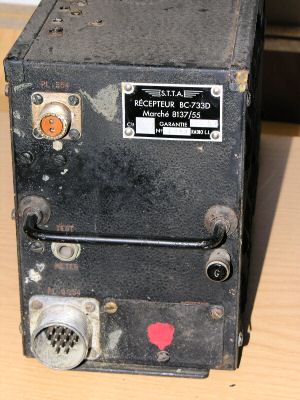 | BC-733D | Localizer Receiver, 108.3-110.3 MHz, crystal-controlled, 14-28 V. Made by Western Electric, Crosley and others for the RC-103 blind landing system. Used with I-101 indicator, R-57/ARN-5 and R-89/ARN-5A. (Photo courtesy E-bay, Italy) |